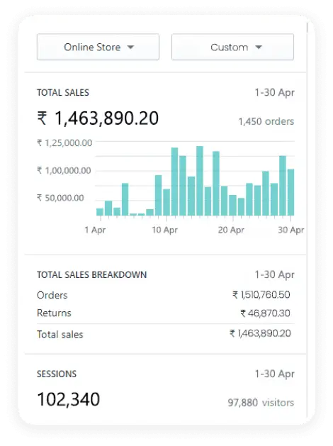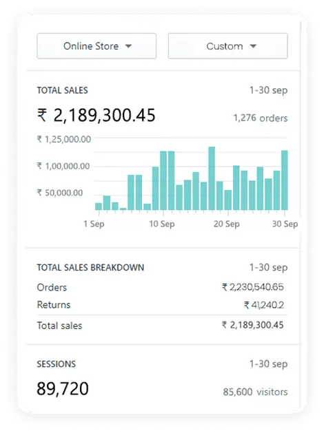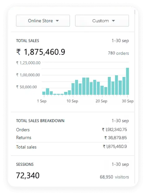 This apparel brand set out to redefine everyday fashion, focusing on quality and style but the problem was their dropping ROAS. After collaborating with us, their sales took off. In September alone, they reached over ₹ 1.46 million in revenue from 1,450 orders. Not only orders, but their website traffic also soared high to 97,880, giving them consistent sales.